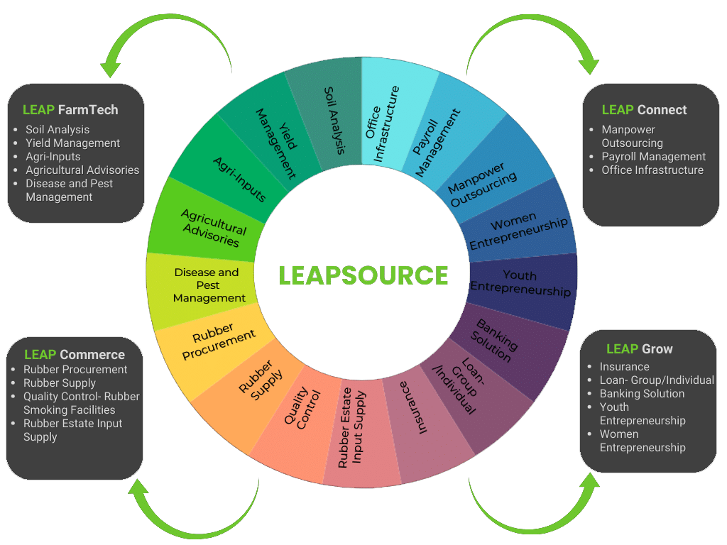 Expanding into the Rubber industry, we launched Leapsource Rubber, an Agritech initiative aimed at transforming Rubber farming in India. With a large indigenous population, our mission is to uplift rural livelihoods through scientific farming, financial assistance, insurance support, and efficient Rubber procurement.
